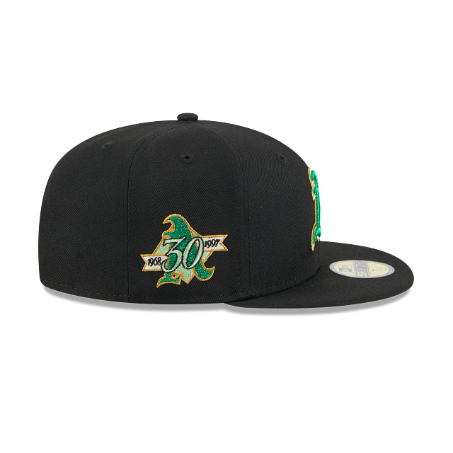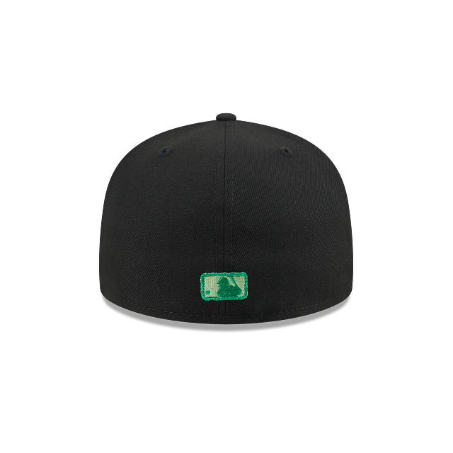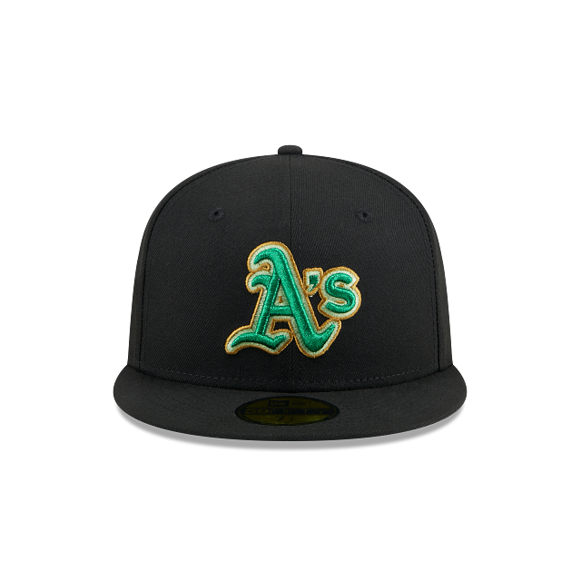 Esta gorra New Era 59FIFTY de Oakland Athletics de la colección MLB Metallic Green Pop presenta un diseño en color negro con el logotipo de los Athletics en verde con contorno dorado bordado en los paneles frontales, un parche conmemorativo del lado derecho, undervisor verde y el flag de New Era bordado en el lado izquierdo. Luce con estilo y cómprala ya.