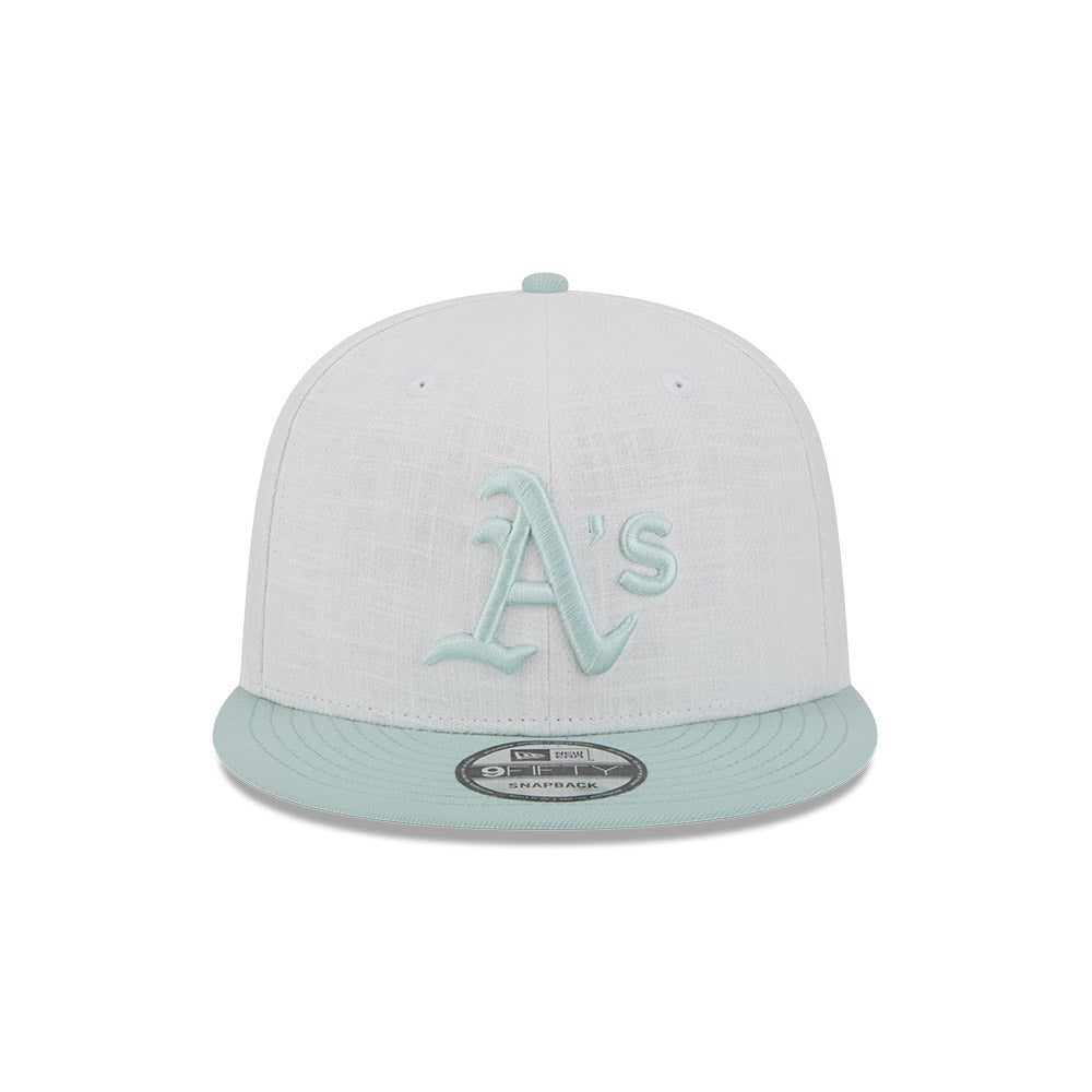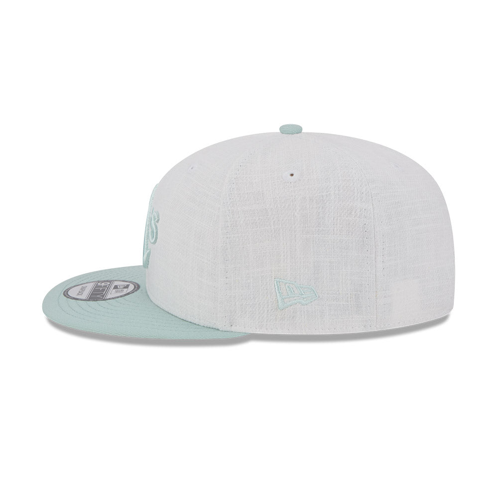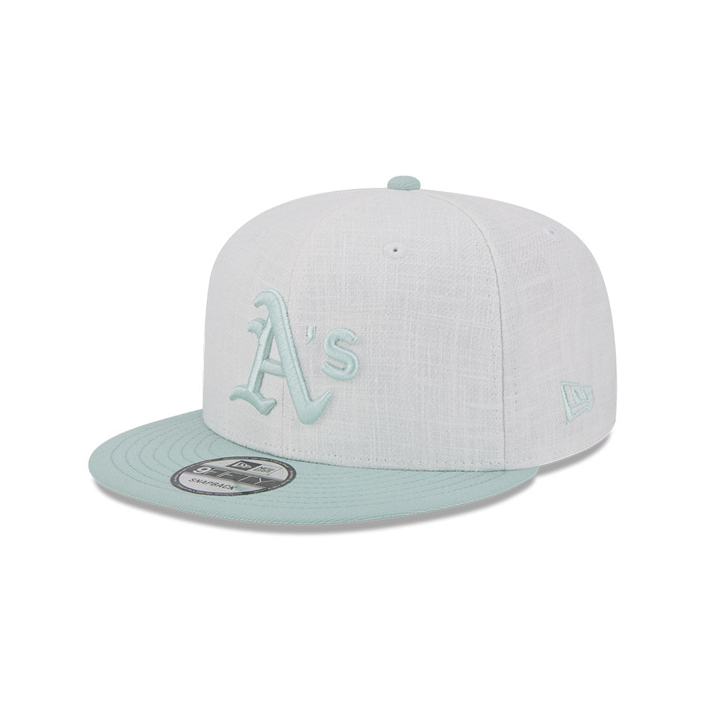 Esta gorra New Era 9FIFTY de Oakland Athletics de la colección MLB Minty Breeze presenta la corona blanca tejida con fibra natural y la visera en tono menta con el logotipo de los Athletics bordado en los paneles frontales, un parche conmemorativo del lado derecho y el flag de New Era bordado en el lado izquierdo. Luce con estilo y cómprala ya.