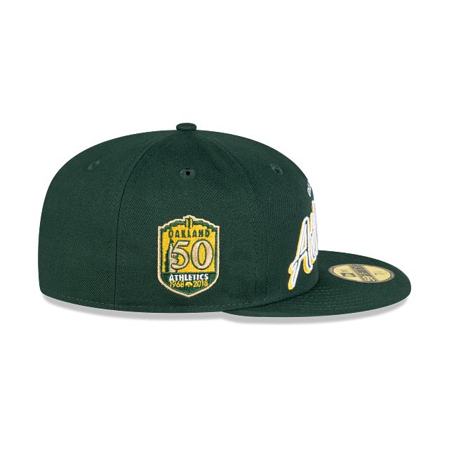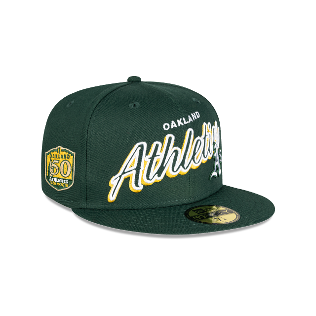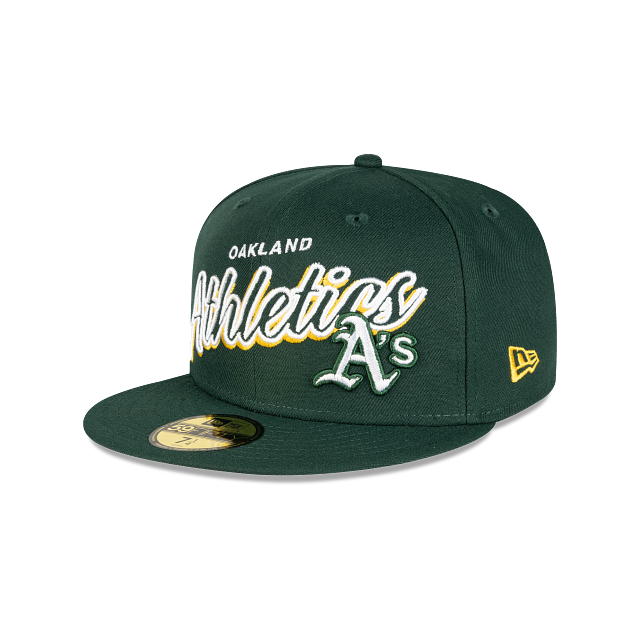 Esta gorra plana New Era 59FIFTY de Oakland Athletics de la colección MLB Script Sided presenta un diseño con el nombre y logotipo de los Athletics bordados en los paneles frontales, un parche conmemorativo del lado derecho, el MLB Batterman en la parte de atrás y el flag de New Era bordado del lado izquierdo. Luce con estilo y cómprala ya.