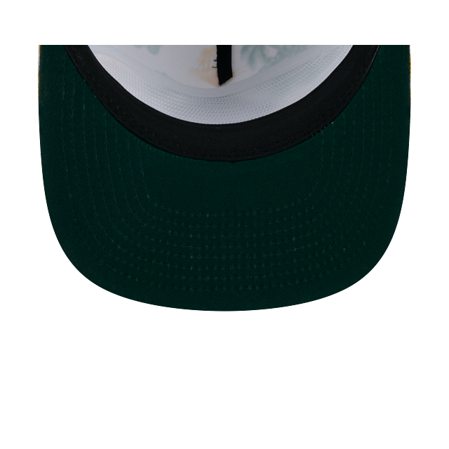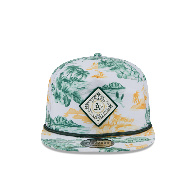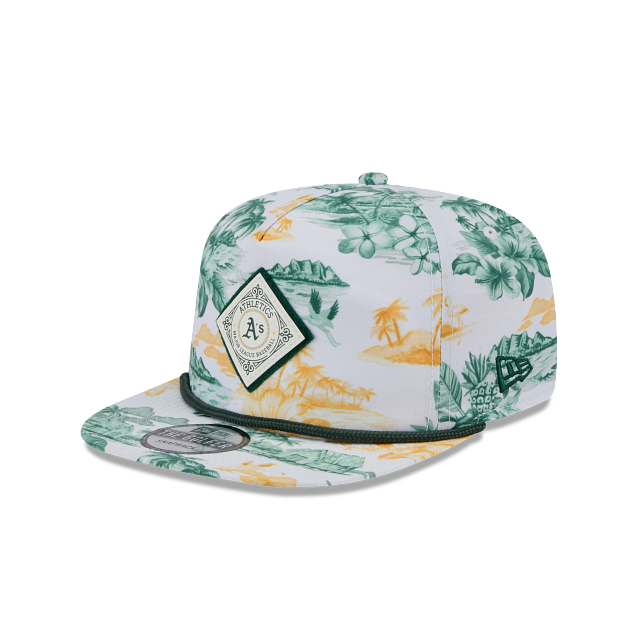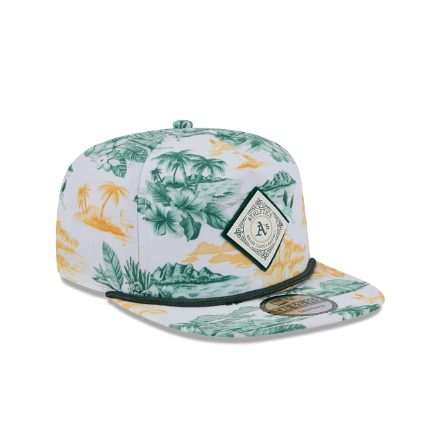 Esta gorra plana New Era Golfer de Oakland Athletics de la colección MLB Tropical Print presenta un estampado de paisaje con el logotipo de los Athletics en cuero sintético y fieltro en los paneles frontales, una decoración de cuerda trenzada en el visor y el flag de New Era bordado del lado izquierdo. Cómprala ya.