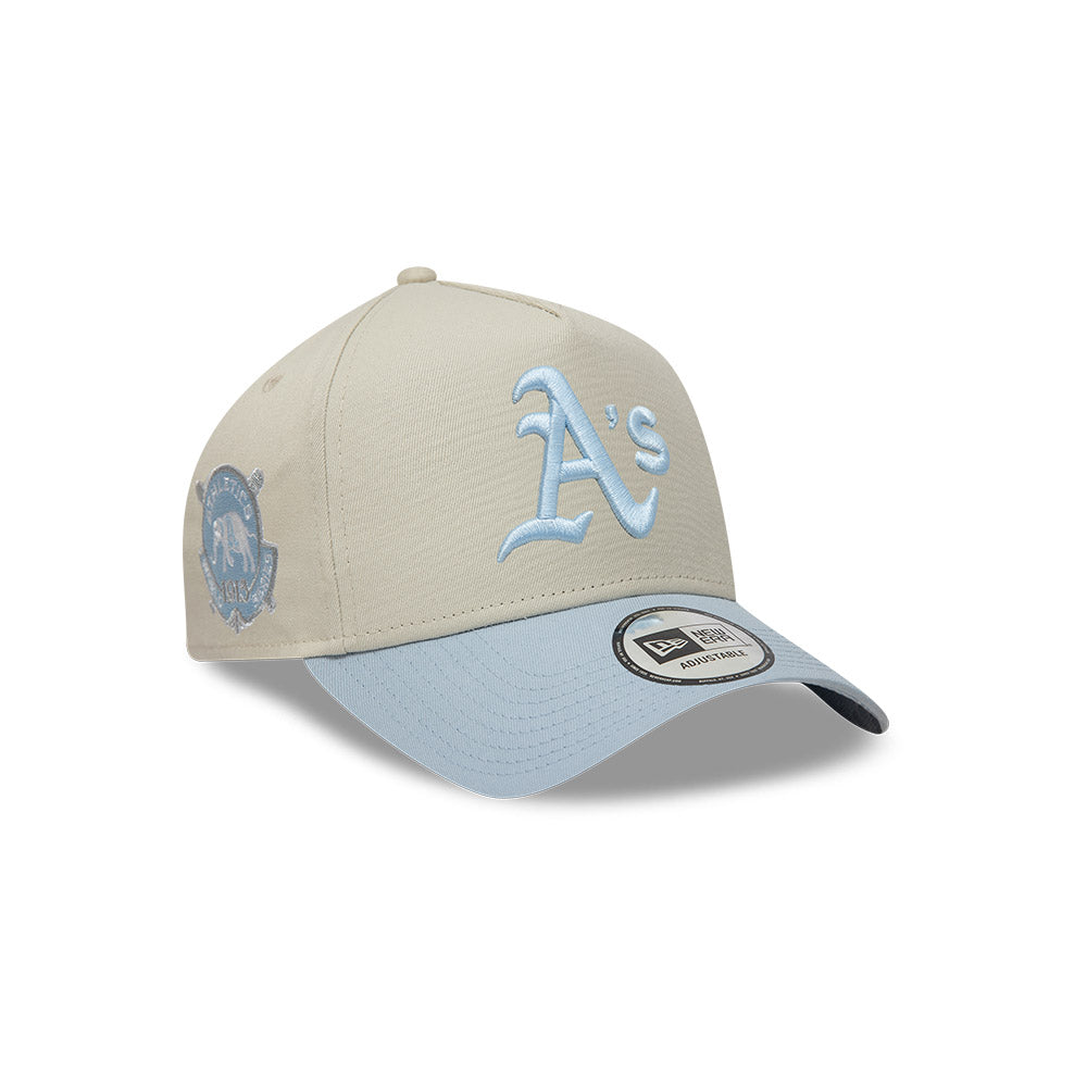 Esta gorra curva New Era 9FORTY A-Frame de Oakland Athletics de la colección MLB World Series Patch presenta un diseño con el logotipo de los Athletics bordado en los paneles frontales, un parche World Series del lado derecho y el flag de New Era bordado del lado izquierdo. Luce con estilo y cómprala ya.
