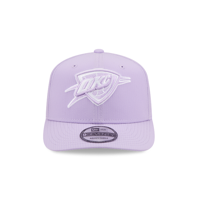 Esta gorra curva New Era 9SEVENTY de Oklahoma City Thunder de la colección NBA Pastel Crepe presenta un diseño en color lila con el logotipo de los Thunder bordado en los paneles frontales, el logo del equipo en la parte de atrás y el flag de New Era bordado del lado izquierdo. Cómprala ya.