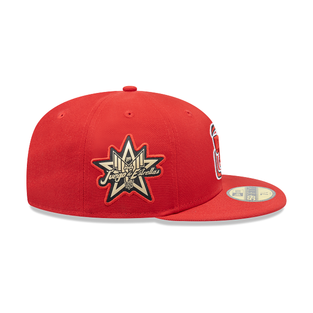 Esta gorra plana New Era 59FIFTY de Olmecas de Tabasco de la colección LMB Juego de Estrellas 2025 presenta el logotipo de los Olmecas bordado en los paneles frontales, un parche del Juego de Estrellas del lado derecho, el logo de la LMB 100 Aniversario al reverso y el flag de New Era bordado del lado izquierdo. Cómprala ya.