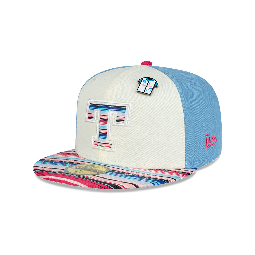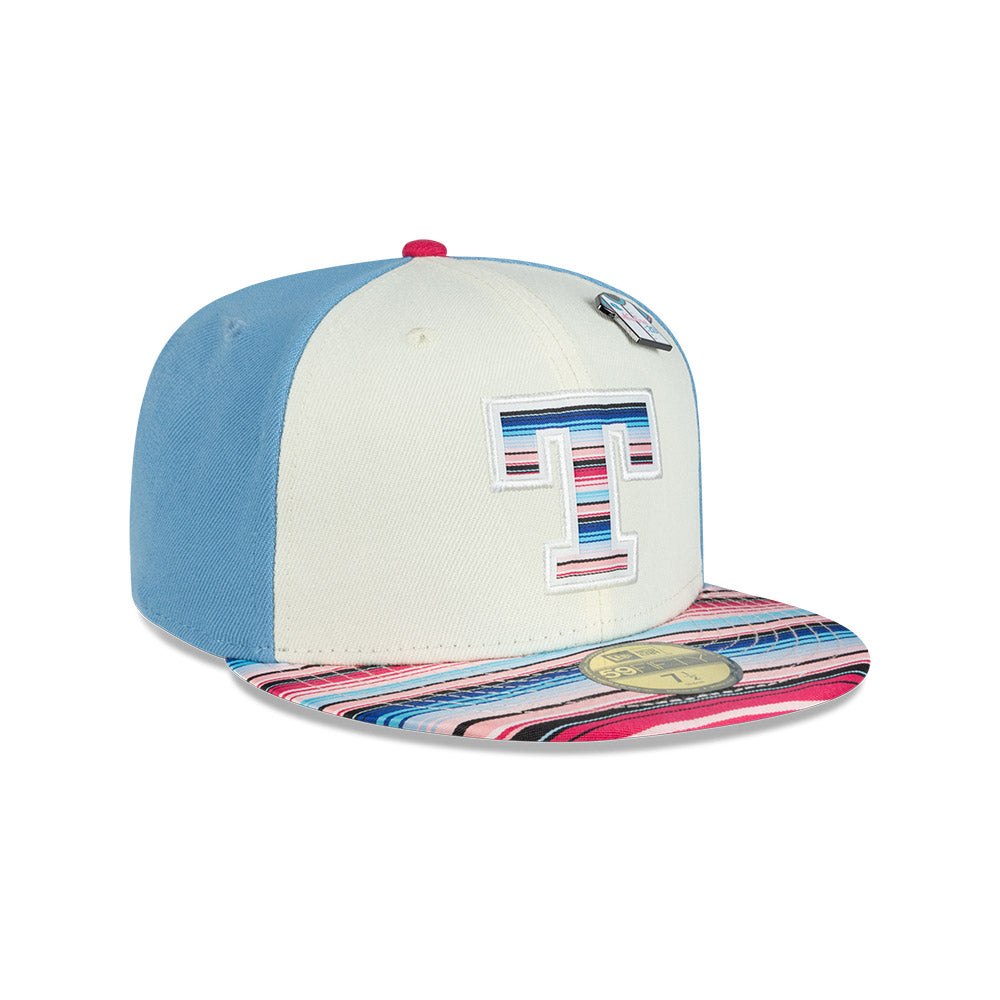 Esta gorra plana New Era 59FIFTY de Olmecas de Tabasco de la colección LMB Sarape presenta el logotipo de los Olmecas bordado en los paneles frontales, el visor con un diseño inspirado en los colores y patrones tradicionales del sarape, el nombre del equipo al reverso, un pin en forma de Jersey y el flag de New Era bordado del lado izquierdo. Cómprala ya.