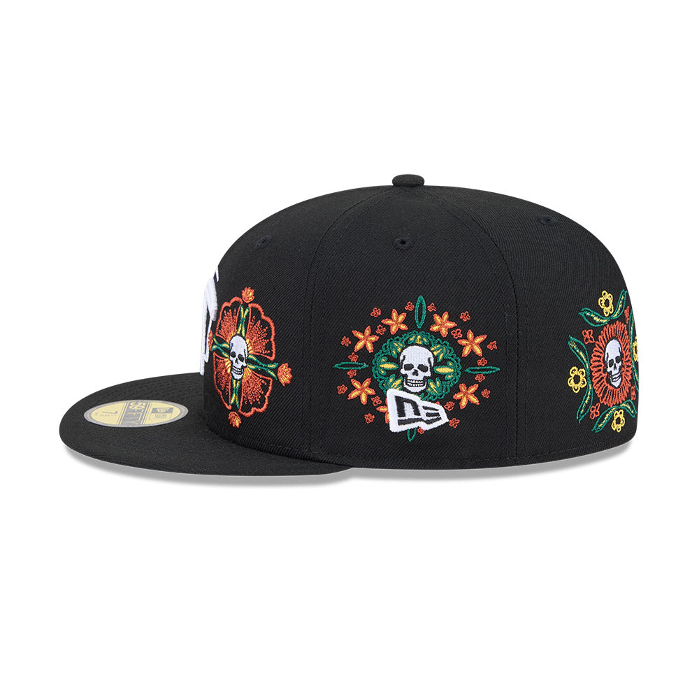Esta gorra plana New Era 59FIFTY de Olmecas de Tabasco de la colección LMB Skull and Flowers presenta el logotipo de los Olmecas bordado en los paneles frontales, calaveras dentro de flores en la corona, el logo de la LMB en la parte de atrás y el flag de New Era bordado del lado izquierdo. Cómprala ya.