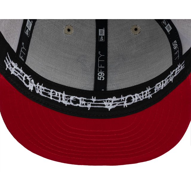 Esta gorra New Era 59FIFTY de Luffy de la colección One Piece presenta un diseño al estilo del sombrero de Luffy, el personaje bordado en los paneles frontales y el nombre del personaje principal en japonés al reverso, y el flag de New Era en el lado izquierdo. No te pierdas este artículo de colección.