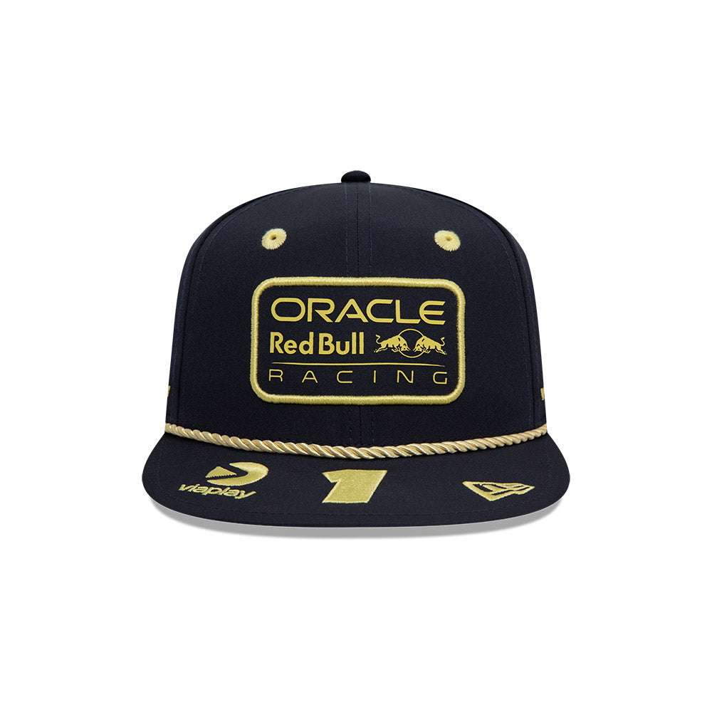 Celebra el campeonato de Max Verstappen con esta gorra New Era 9FIFTY de Oracle Red Bull Racing que presenta un diseño azul con distintivos dorados, el logotipo de la escudería bordado al frente, el número 1 del piloto en la visera y el flag de New Era en la visera. Apoya a Max y la escudería, cómprala ya.