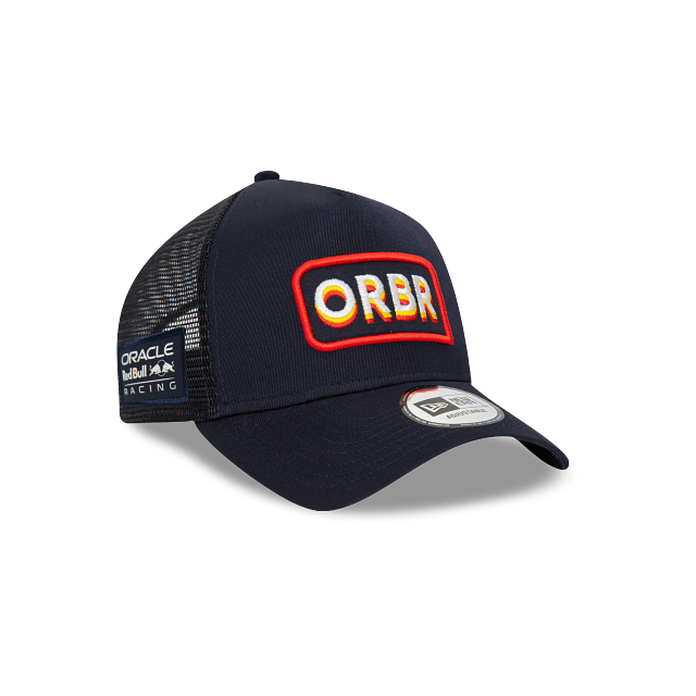 Esta gorra New Era 9FORTY AF Trucker de Oracle Red Bull Racing de la colección Seasonal Collection presenta un diseño azul con el parche de ORBR en los paneles frontaltes, el logotipo de la escudería del lado derecho, malla al reverso y el flag de New Era bordado en el lado izquierdo. Cómprala ya.