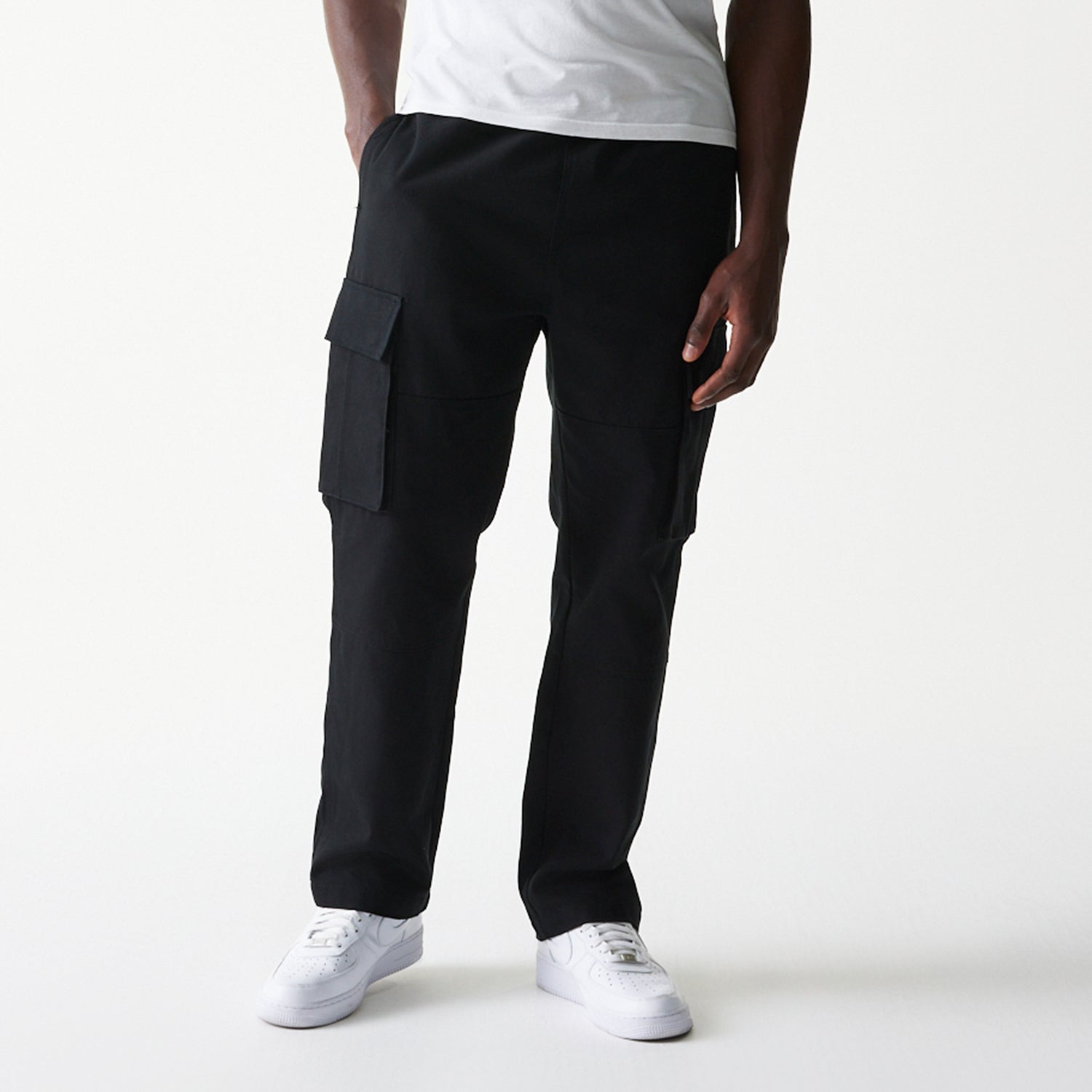 Estos Pants Cargo New Era de corte regular de la colección New Era Heritage que ofrece un ajuste cómodo y clásico. Presenta un diseño en tejido de lona color negro, bolsillos cargo en las laterales, cintura ajustable con cordón, y el flag de New Era bordado en la pierna izquierda. Cómprala ya.