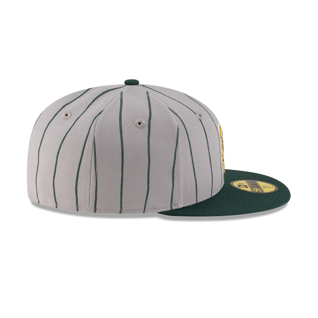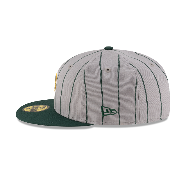 Esta gorra plana New Era 59FIFTY de Pericos de Puebla de la colección LMB Game Caps presenta un diseño a rayas con el logotipo de los Pericos bordado en los paneles frontales, el logo de la LMB 100 Aniversario al reverso y el flag de New Era bordado del lado izquierdo. Apoya a tu equipo y cómprala ya.