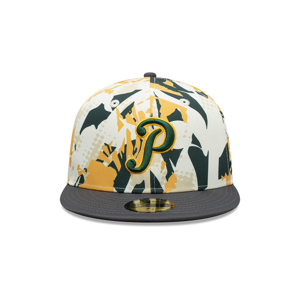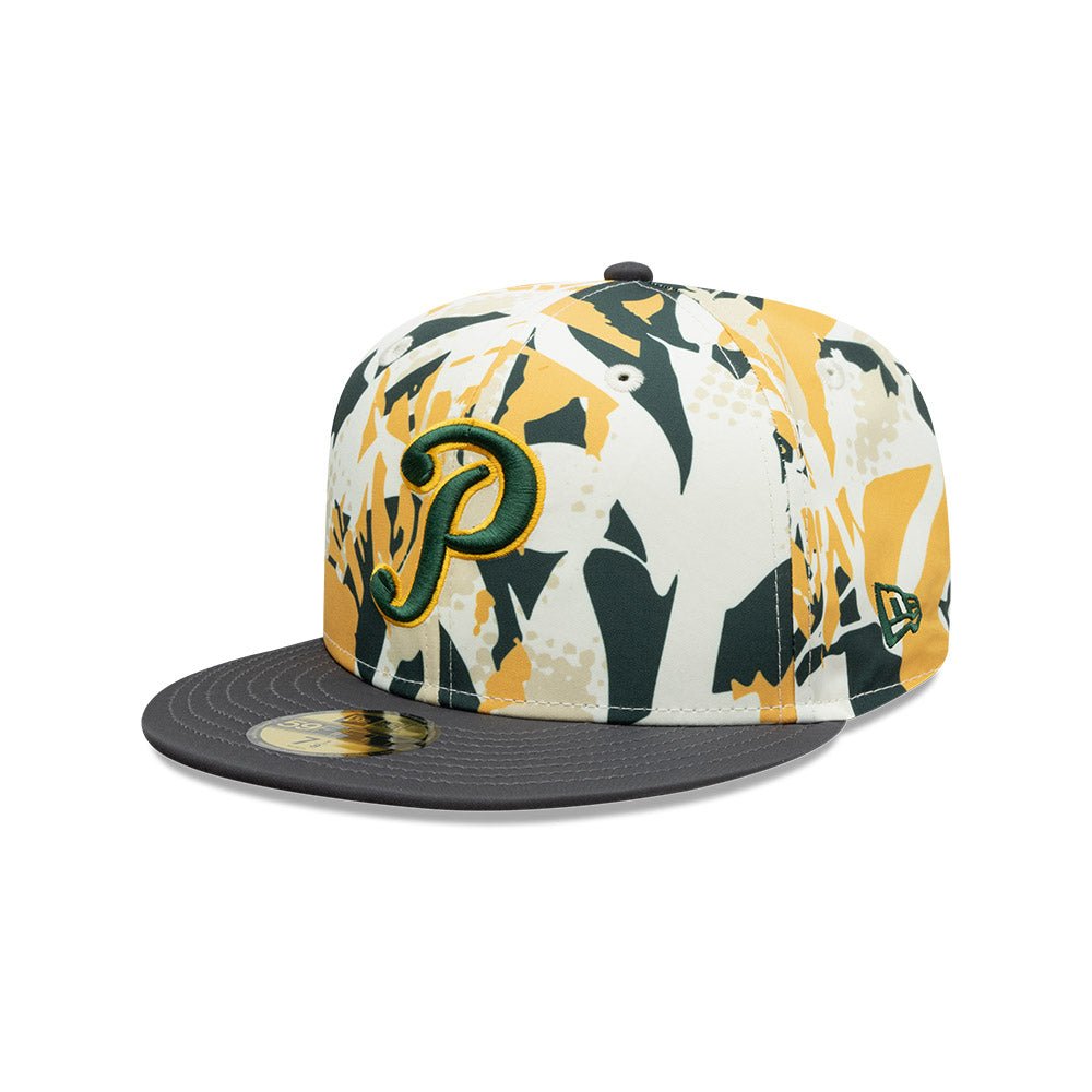 Esta gorra plana New Era 59FIFTY de Pericos de Puebla de la colección LMB Spring Training Fan Pack 2025 presenta un estampado multicolor en la corona con el logotipo de los Pericos bordado en los paneles frontales, el logo de la LMB 100 Años al reverso al reverso y el flag de New Era bordado del lado izquierdo. Apoya a tu equipo y cómprala ya.