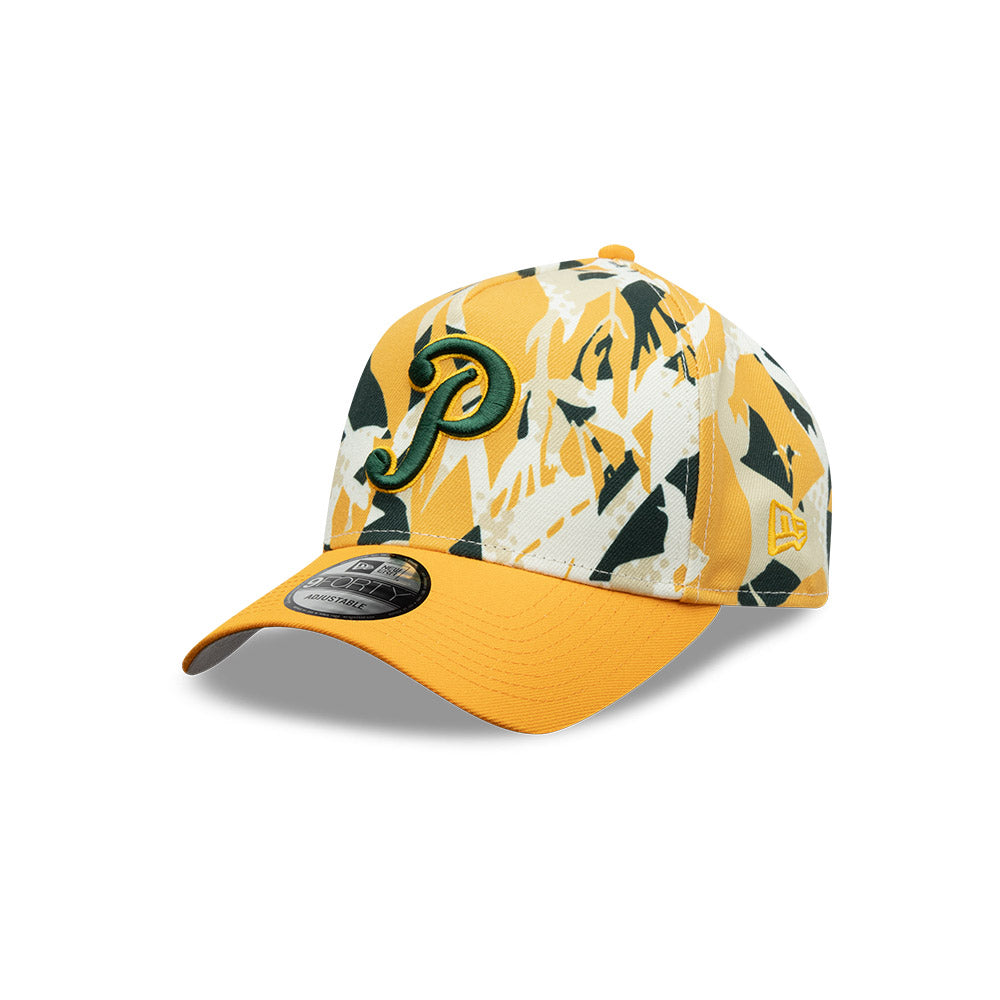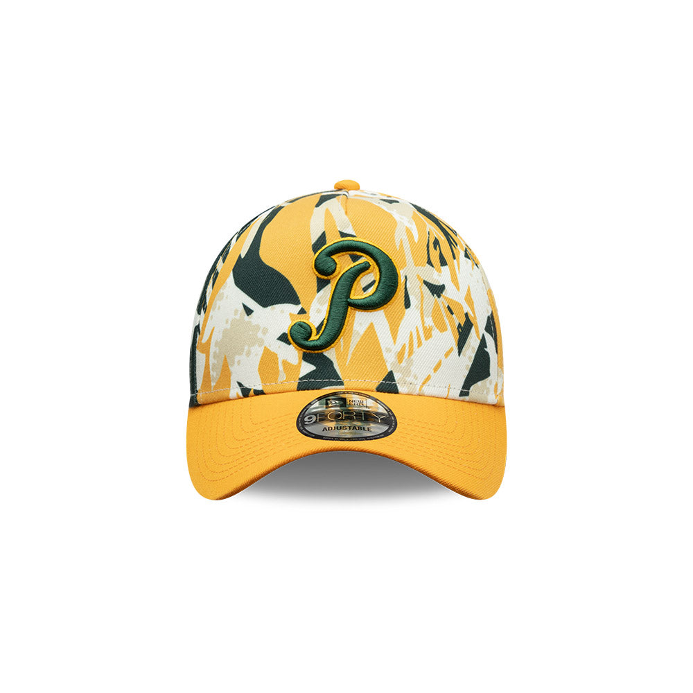 Esta gorra curva New Era 9FORTY A-Frame de Pericos de Puebla de la colección LMB Spring Training Fan Pack 2025 presenta un estampado multicolor en la corona con el logotipo de los Pericos bordado en los paneles frontales y el flag de New Era bordado del lado izquierdo. Apoya a tu equipo y cómprala ya.