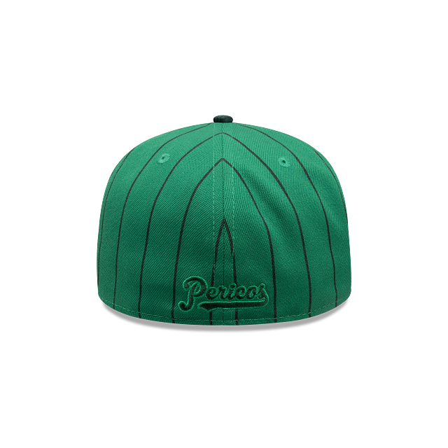 Esta gorra plana New Era 59FIFTY de Pericos de Puebla de la colección LMB Team Exclusive presenta un diseño pinstripe con el logotipo de los Pericos bordado en los paneles frontales, el nombre del equipo al reverso y el flag de New Era bordado del lado izquierdo. Cómprala ya.