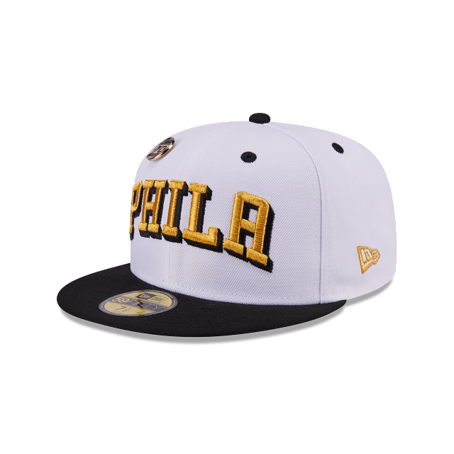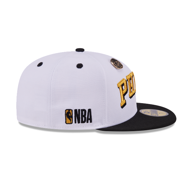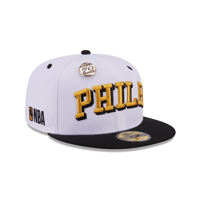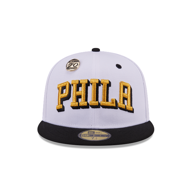 Celebra el 70 aniversario de la silueta que cambió el juego con esta gorra New Era 59FIFTY de Philadelphia 76Ers de la colección del New Era Cap 59FIFTY Day Collection que presenta una corona blanca con el nombre de los 76Ers en dorado bordado en los paneles frontales, el pin del 70 aniversario, el logo de la NBA del lado derecho y el flag de New Era bordado en el lado izquierdo. No te pierdas este artículo de colección y cómprala ya.