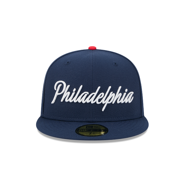 Esta gorra plana New Era 59FIFTY de Philadelphia 76Ers de la colección NBA City Edition 2025 presenta el nombre de la ciudad de los 76Ers bordada en los paneles frontales, el logo del equipo del lado derecho, el logo de la NBA en la parte de atrás y el flag de New Era bordado del lado izquierdo. Cómprala ya.