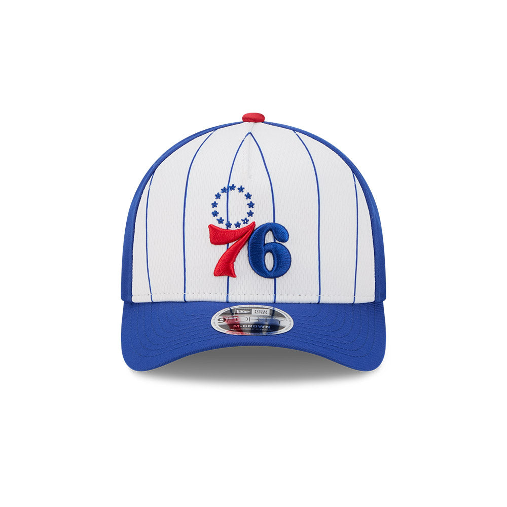 Esta gorra curva New Era 9FORTY M-Crown A-Frame de Philadelphia 76Ers de la colección NBA Tip Off 2025 presenta un diseño pinstripe con el logotipo de los 76Ers bordado en el panel frontal, el logo de la NBA del lado derecho y el flag de New Era bordado del lado izquierdo. Cómprala ya.