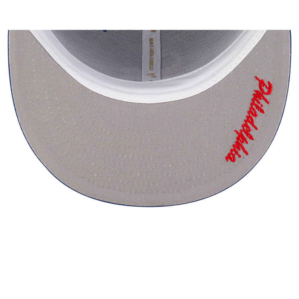 Esta gorra plana New Era 59FIFTY de Philadelphia 76Ers de la colección OVO X NBA presenta un diseño con el logotipo de los 76Ers bordado en los paneles frontales, el logo de OVO del lado derecho, el nombre de la marca al reverso, la sede del equipo en el undervisor y el flag de New Era bordado del lado izquierdo. Cómprala ya.