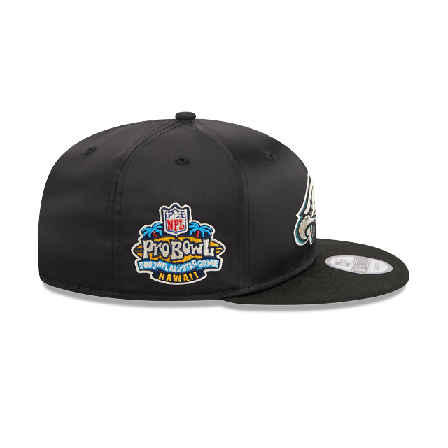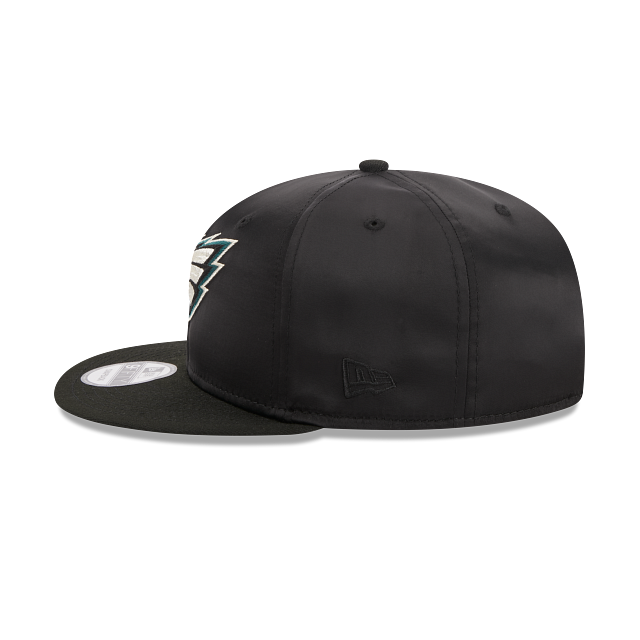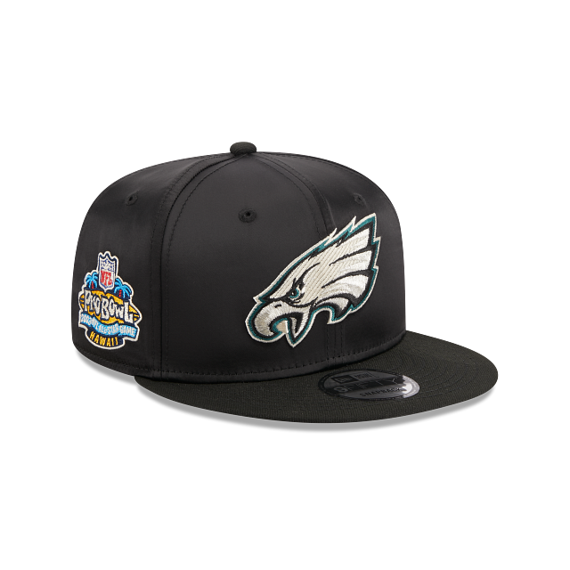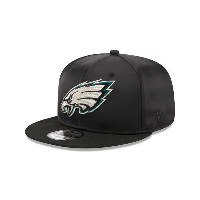 Esta gorra New Era 9FIFTY de Philadelphia Eagles de la colección NFL Satin Black presenta un diseño de satín negro con el logotipo de los Eagles bordado en los paneles frontales, un parche conmemorativo del lado derecho, broche ajustable y el flag de New Era bordado en el lado izquierdo. Dale un toque a tu outfit y apoya a tu equipo. Cómprala ya.