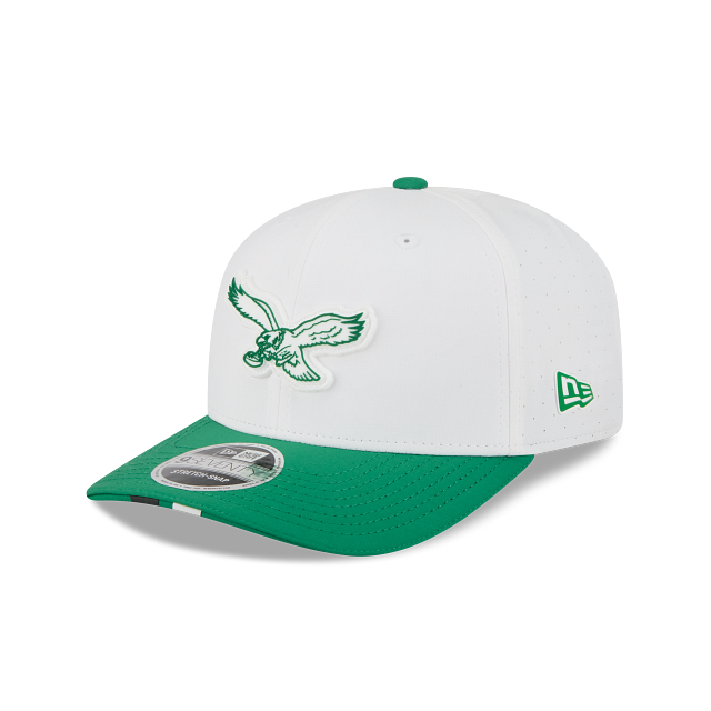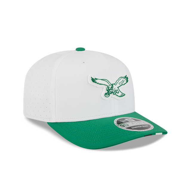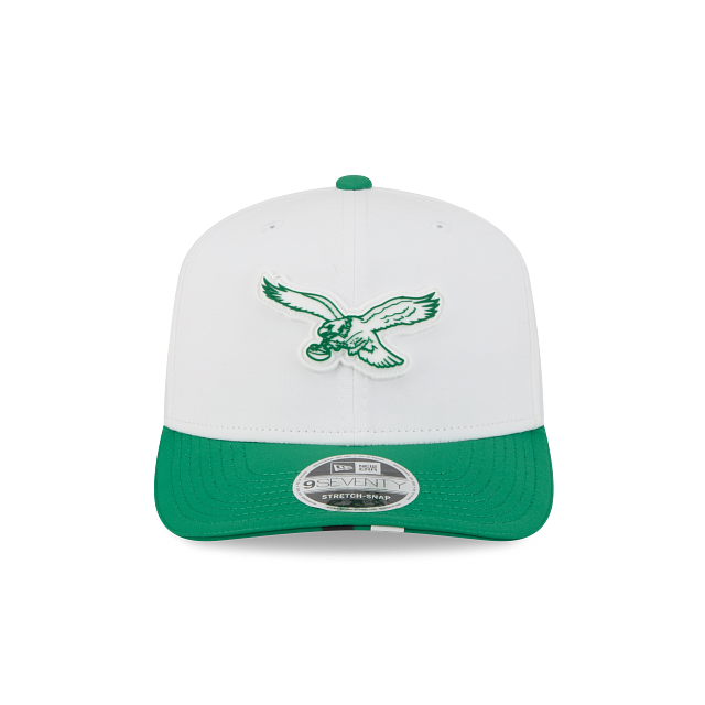 Esta gorra curva New Era 9SEVENTY Stretch Snap de Philadelphia Eagles de la colección NFL Training 2025 presenta una corona en color blanco con el logotipo de los Eagles engomado en los paneles frontales, el logo de la NFL al reverso y el flag de New Era engomado del lado izquierdo. Apoya a tu equipo y cómprala ya.