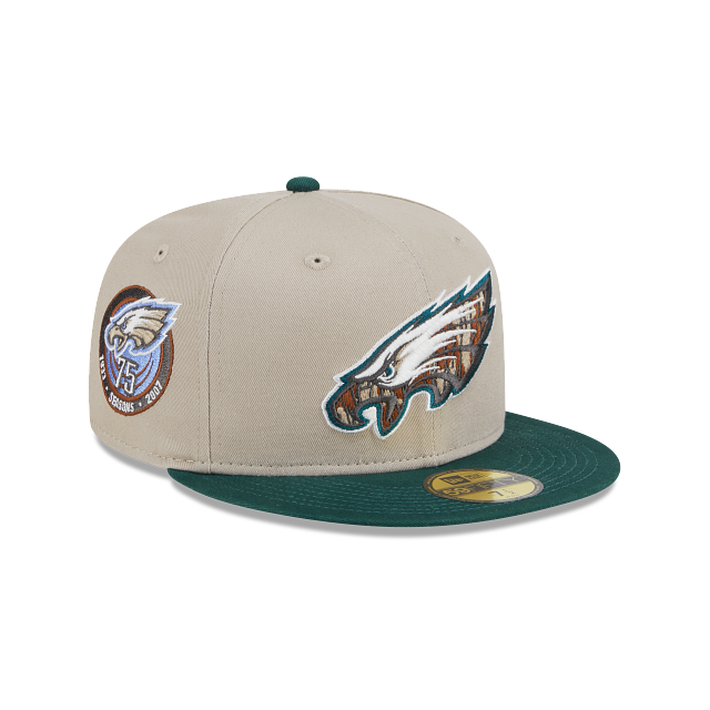 Esta gorra New Era 59FIFTY de Philadelphia Eagles de la colección NFL Tree Bark Fill presenta un diseño con toques de naturaleza con el logotipo de los Eagles con detalles de animal print bordado en los paneles frontales, un parche conmemorativo del lado derecho y el flag de New Era bordado en el lado izquierdo. Luce fresco y cómprala ya.