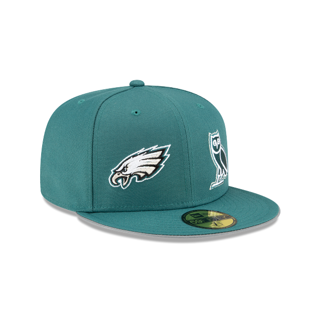 Esta gorra New Era 59FIFTY de Philadelphia Eagles de la colaboración OVO X NFL presenta el ícono de la marca del rapero Drake y el logotipo de los Eagles bordados en los paneles frontales, el logotipo de la conferencia al reverso y el flag de New Era bordado en el lado izquierdo. No te pierdas este artículo de colección. Cómprala ya.