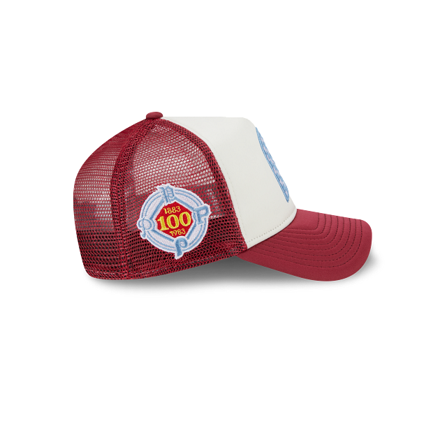 Esta gorra New Era 9FORTY AF Trucker de Philadelphia Phillies de la colección MLB Check Flag presenta el frente blanco con el logotipo de los Phillies en los paneles frontales, un parche conmemorativo del lado derecho, malla y visera del color del equipo, y el flag de New Era bordado en el lado izquierdo. Luce con estilo. Cómprala ya.