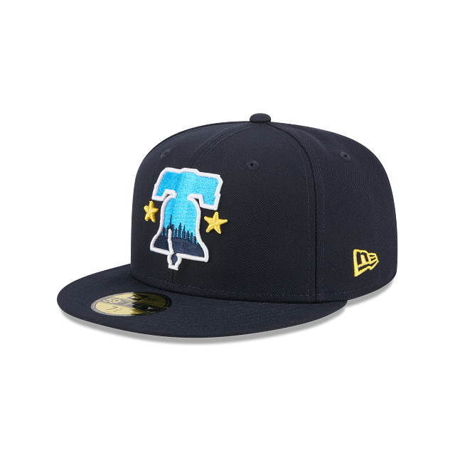 Esta gorra plana New Era 59FIFTY de Philadelphia Phillies de la colección MLB City Connect inspirada en el jersey City Connect presenta el logotipo de los Phillies bordado en los paneles frontales, el MLB Batterman al reverso, el undervisor en color gris y el flag de New Era bordado del lado izquierdo. Cómprala ya.