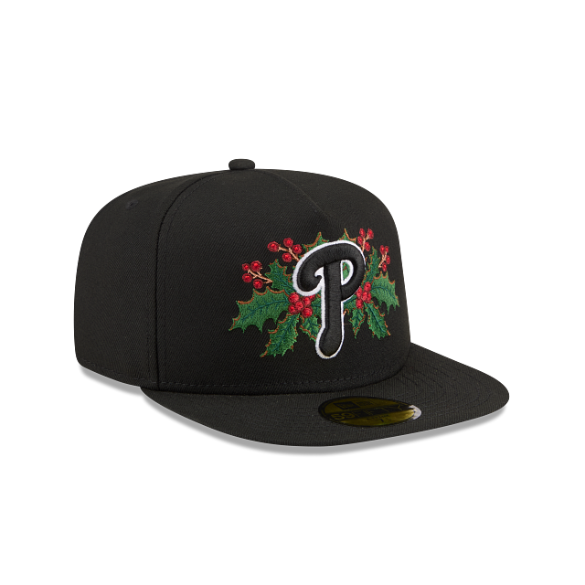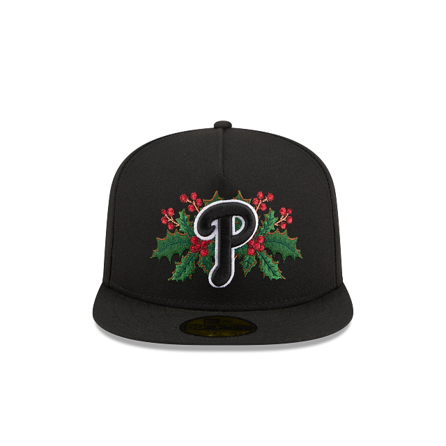 Esta gorra plana New Era 59FIFTY A-Frame de Philadelphia Phillies de la colección MLB Holly presenta el logotipo de los Phillies con la planta de acebo bordado en el panel frontal, el MLB Batterman en la parte de atrás y el flag de New Era bordado del lado izquierdo. Cómprala ya.