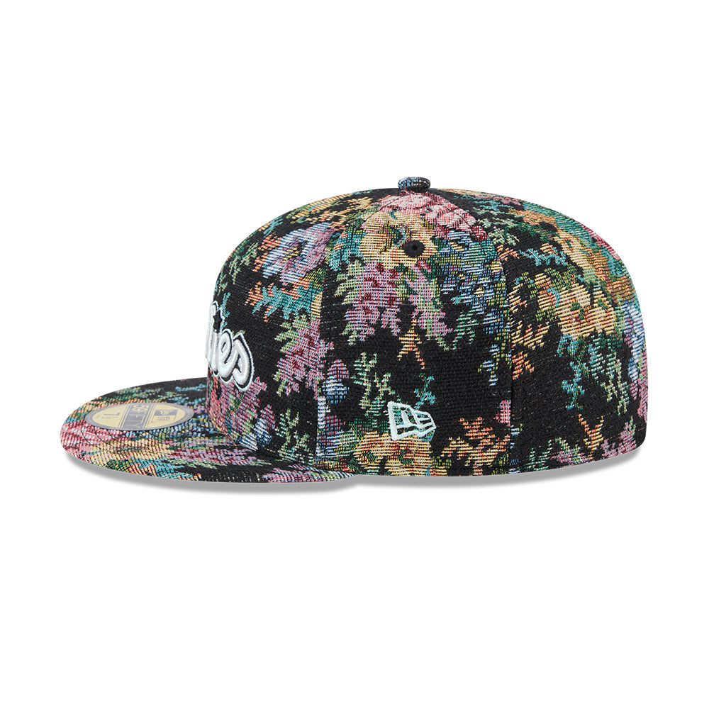 Esta gorra plana New Era 59FIFTY de Philadelphia Phillies de la colección MLB Jacquard Patterns presenta un diseño con patrón floral jacquard con el nombre de los Phillies bordado en los paneles frontales, el MLB Batterman al reverso y el flag de New Era bordado del lado izquierdo. Cómprala ya.