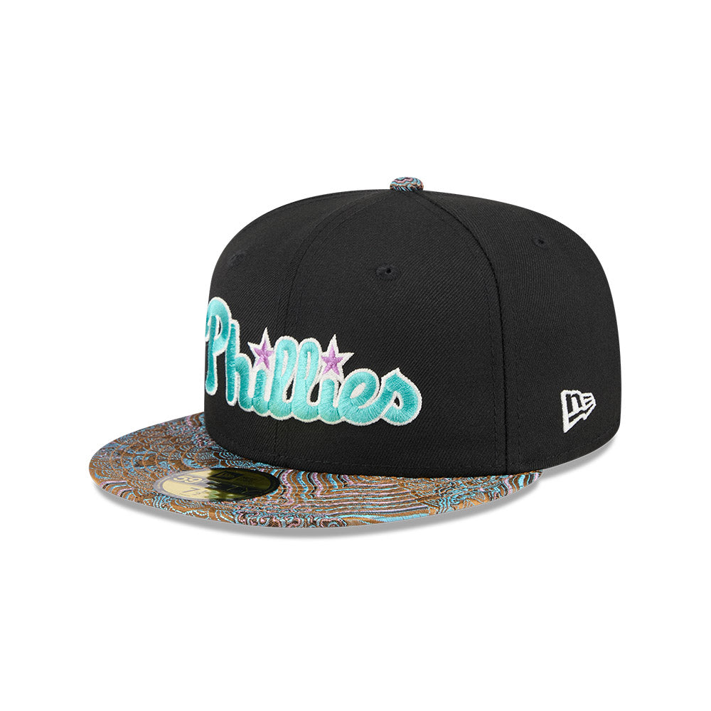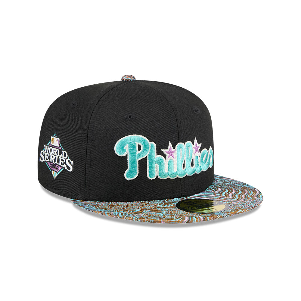 Esta gorra plana New Era 59FIFTY de Philadelphia Phillies de la colección MLB Jacquard Visor presenta un diseño con el nombre de los Phillies bordado en los paneles frontales, un parche World Series del lado derecho, el visor jacquard, el MLB Batterman en la parte trasera y el flag de New Era bordado del lado izquierdo. Luce con estilo y cómprala ya.