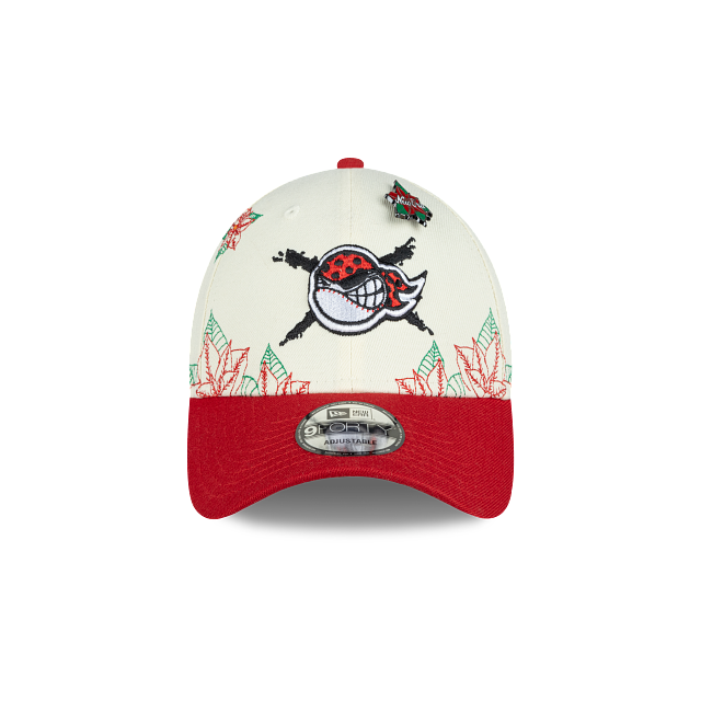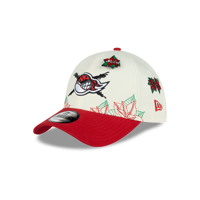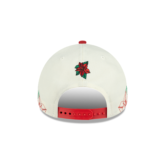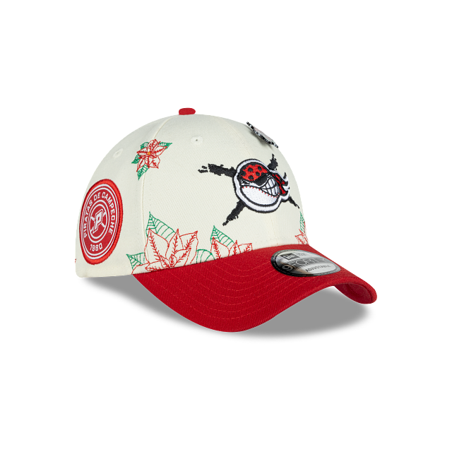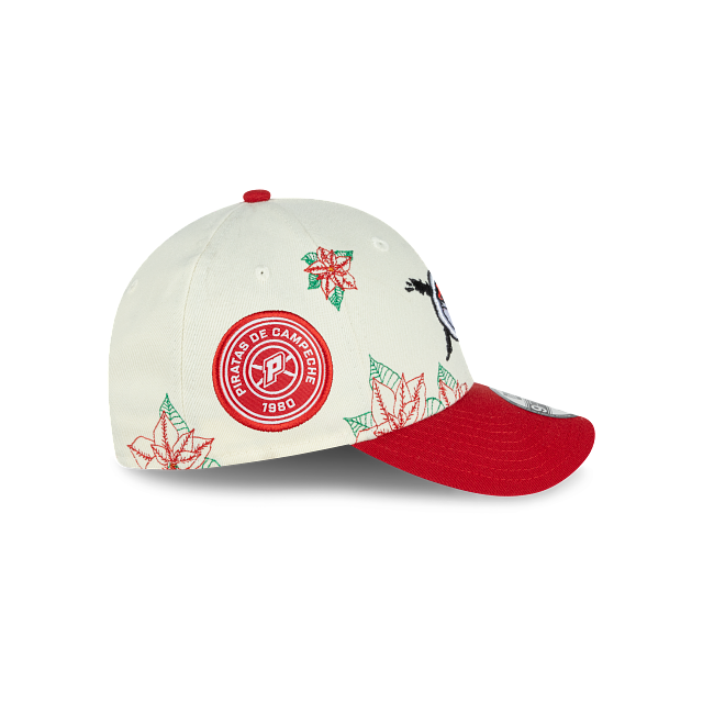 Esta gorra curva New Era 9FORTY de Piratas de Campeche de la colección LMB Nochebuena presenta un diseño con el logotipo de los Piratas bordado en los paneles frontales junto con un pin en forma de flor de nochebuena, hojas de nochebuena en toda la corona, un parche representativo del equipo del lado derecho y el flag de New Era bordado del lado izquierdo. Cómprala ya.