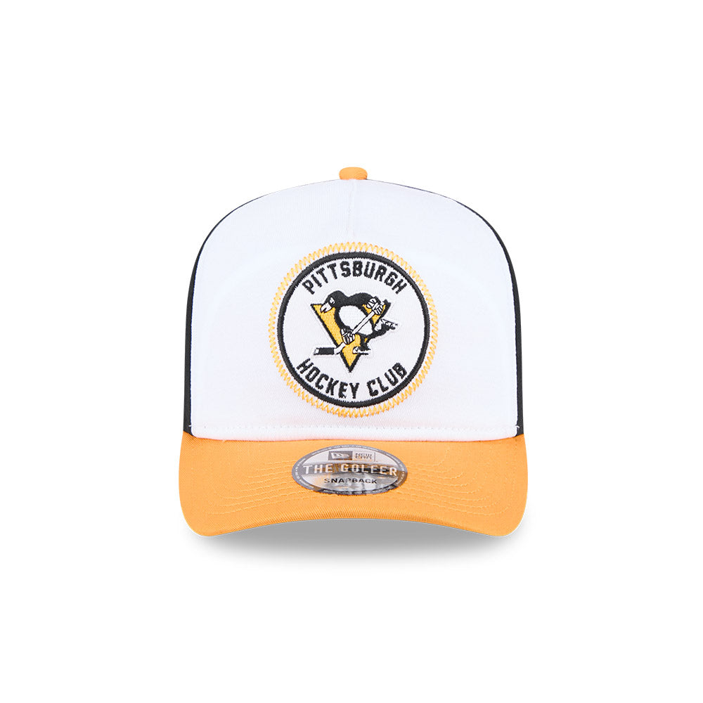 Esta gorra curva New Era Golfer de Pittsburgh Penguins de la colección NHL Vintage presenta el nombre y logotipo de los Penguins bordados en los paneles frontales, el logo de la NHL al reverso del lado derecho y el flag de New Era bordado del lado izquierdo. Cómprala ya.