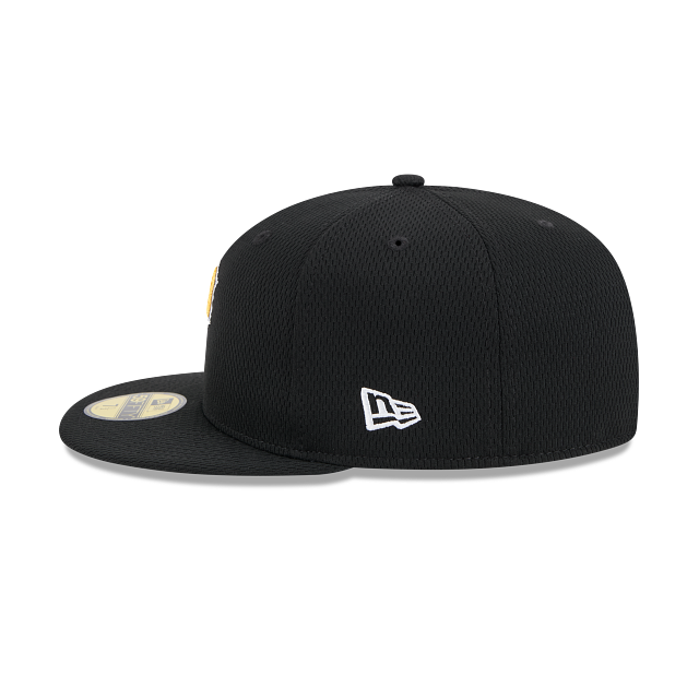 Esta gorra plana New Era 59FIFTY de Pittsburgh Pirates de la colección MLB Clubhouse 2025 presenta el logotipo de los Pirates bordado en los paneles frontales, el logo retro del equipo en el undervisor, el MLB Batterman al reverso y el flag de New Era bordado del lado izquierdo. Apoya a tu equipo y cómprala ya.