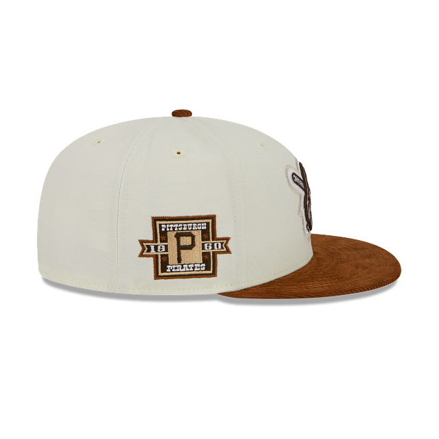 Esta gorra New Era 59FIFTY de Pittsburgh Pirates de la colección exclusiva online MLB Corduroy Visor presenta un diseño two tone con una distintiva visera de pana café, el logotipo de los Pirates bordado en los paneles frontales, un parche conmemorativo del lado derecho y el flag de New Era bordado en el lado izquierdo. Dale un toque a tu outfit esta temporada y cómprala ya