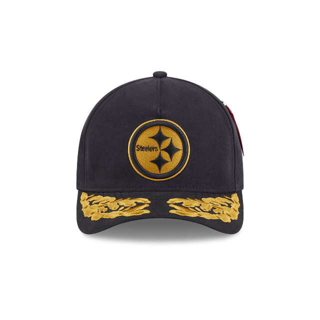 Esta gorra curva New Era 9FORTY M-Crown A-Frame de Pittsburgh Steelers de la colección Alpha Industries X NFL presenta un diseño en color negro, el logotipo de los Steelers bordado en dorado en el panel frontal, bordado de laurel en el visor, el nombre del equipo en la parte de atrás, etiqueta Alpha Industries y el flag de New Era bordado del lado izquierdo. Cómprala ya.