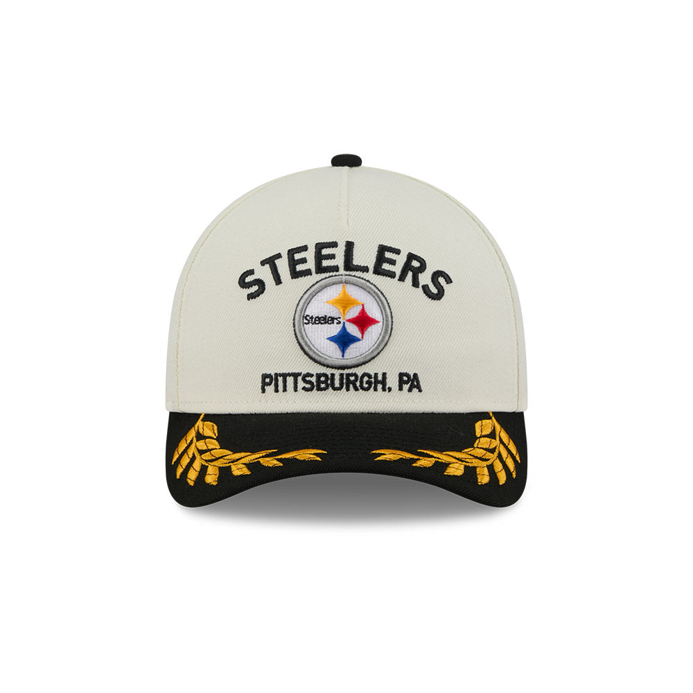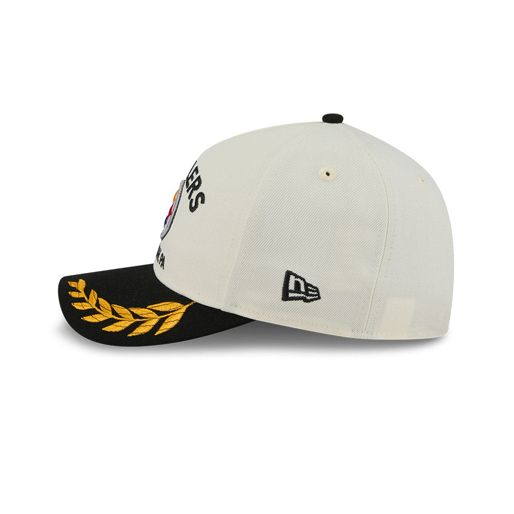 Esta gorra curva New Era 9FORTY M-Crown A-Frame de Pittsburgh Steelers de la colección NFL Draft 2025 presenta el nombre y logotipo de los Steelers bordados en los paneles frontales, laureles bordados en el visor, el logo de la NFL al reverso y el flag de New Era bordado del lado izquierdo. Cómprala ya.