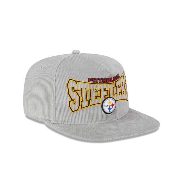 Esta gorra plana New Era Golfer de Pittsburgh Steelers de la colección NFL Golfer Gray Corduroy presenta un diseño en pana con el logotipo de los Steelers bordado en los paneles frontales y el flag de New Era bordado del lado izquierdo. Luce con estilo y cómprala ya.