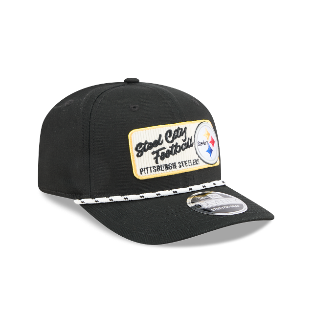 Esta gorra curva New Era 9SEVENTY Stretch Snap de Pittsburgh Steelers de la colección NFL Leisure presenta un parche en forma de placa con el nombre y logotipo de los Steelers en los paneles frontales, cuerda trenzada en el visor y el flag de New Era bordado del lado izquierdo. Apoya a tu equipo y cómprala ya.