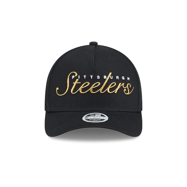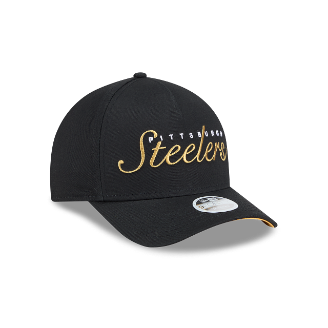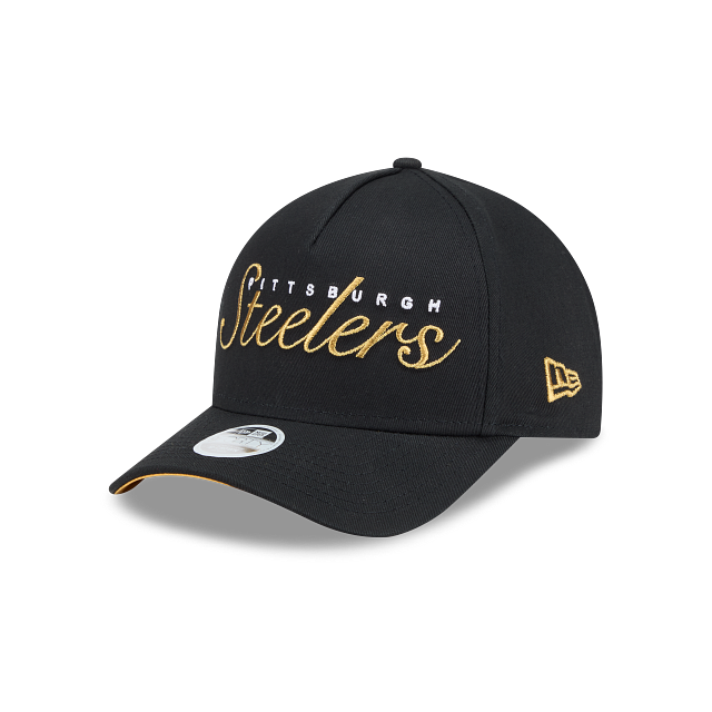 Esta gorra curva New Era 9FORTY M-Crown A-Frame de Pittsburgh Steelers para Mujer de la colección NFL Metallic Script presenta el script de los Steelers bordado en color metálico en el panel frontal, etiqueta con el logo del equipo en el broche y el flag de New Era bordado del lado izquierdo. Cómprala ya.
