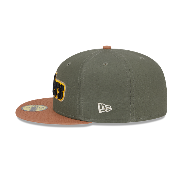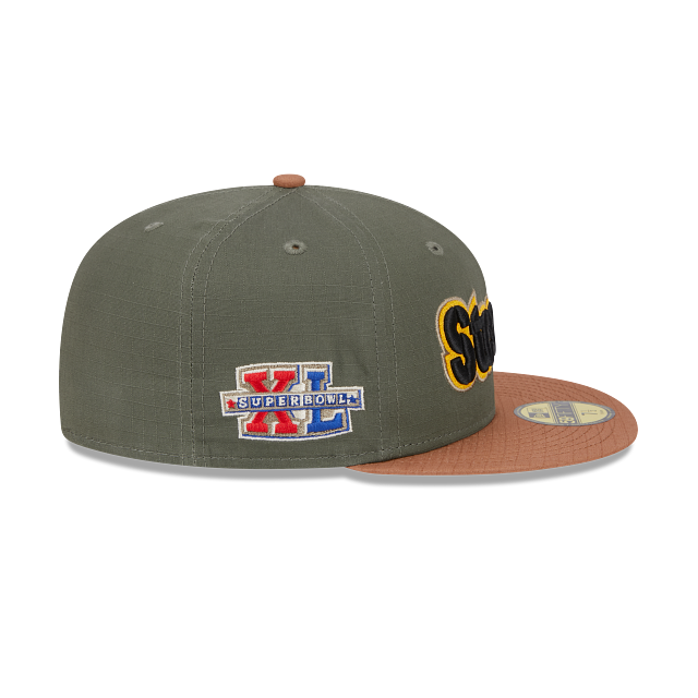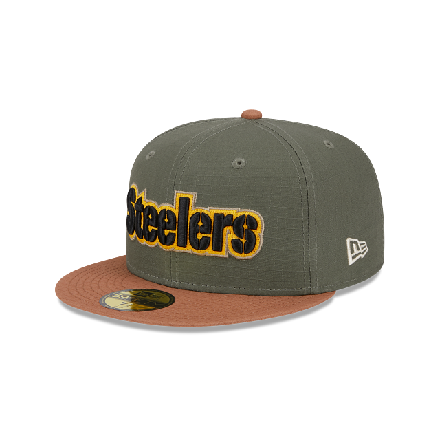 Esta gorra New Era 59FIFTY de Pittsburgh Steelers de la colección NFL Ripstop presenta un diseño two tone con la corona en color verde olivo y la visera café, el nombre de los Steelers bordado al frente, un parche conmemorativo del lado derecho, el logo de NFL dorado al reverso y el flag de New Era bordado en el lado izquierdo. Apoya a tu equipo y cómprala ya.