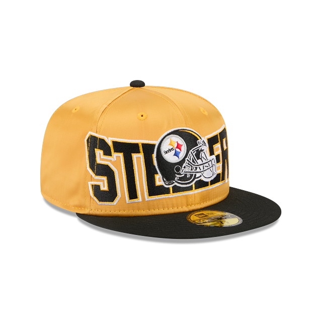 Esta gorra plana New Era 59FIFTY de Pittsburgh Steelers de la colección NFL Satin presenta un diseño satinado con el casco de los Steelers bordado sobre el nombre del equipo en los paneles frontales, el logo de NFL en la parte de atrás y el flag de New Era bordado del lado izquierdo. Cómprala ya.