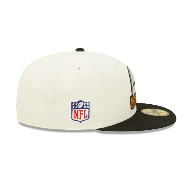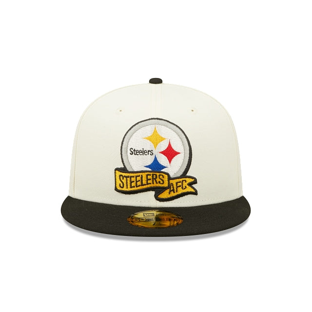 La temporada de la NFL ya esta aquí. Representa a tu equipo con esta gorra New Era 59FIFTY de Pittsburgh Steelers NFL Sideline 2022 la cual presenta el logo del equipo bordado en los paneles frontales a juego con una bandera con el nombre y su conferencia, un parche de la NFL en el lado derecho y un logo del equipo en la parte trasera. Cómprala ya.