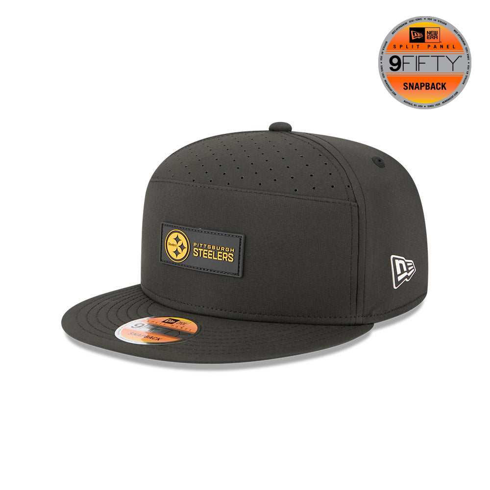 Esta gorra plana New Era 9FIFTY Split Panel de Pittsburgh Steelers de la colección NFL Sideline Hot Weather 2025 incorpora tecnología HOT que mejora el rendimiento y la comodidad: COOLERA con banda interior que absorbe la humedad y secado rápido para uso durante todo el día, DRYERA con tela repelente al agua y COMFORT con material ligero para una sensación suave y ajuste cómodo.