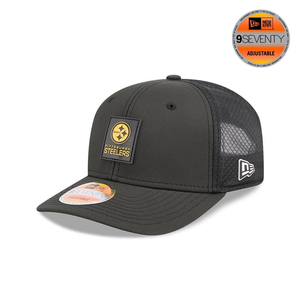 Presenta el logotipo de los Steelers en silicón tipo engomado en los paneles frontales, malla trucker ligera para mejor ventilación, el logo de la NFL en la parte derecha de atrás y el flag de New Era engomado del lado izquierdo. Apoya a tu equipo y cómprala ya.
