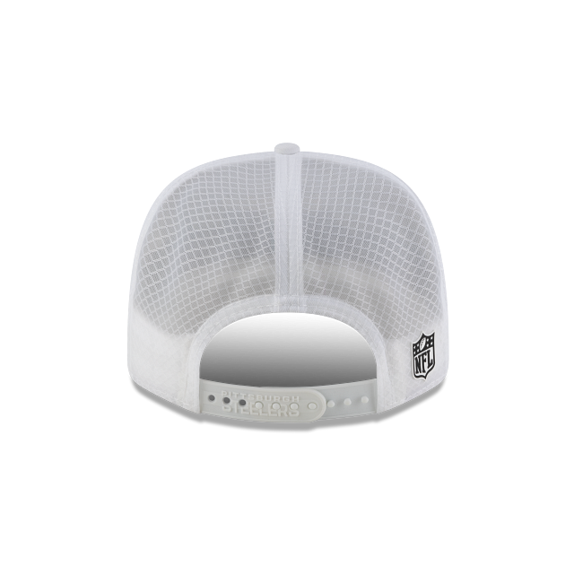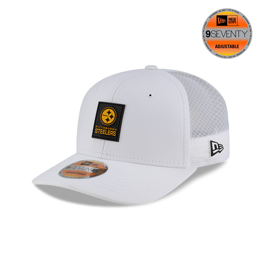 Presenta el logotipo de los Steelers en silicón tipo engomado en los paneles frontales, malla trucker ligera para mejor ventilación, el logo de la NFL en la parte derecha de atrás y el flag de New Era engomado del lado izquierdo. Apoya a tu equipo y cómprala ya.