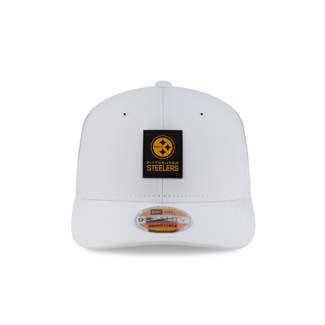 Esta gorra curva New Era 9SEVENTY de Pittsburgh Steelers de la colección NFL Sideline Hot Weather 2025 incorpora tecnología HOT que mejora el rendimiento y la comodidad: COOLERA con banda interior que absorbe la humedad y secado rápido para uso durante todo el día, DRYERA con tela repelente al agua y COMFORT con material ligero para una sensación suave y ajuste cómodo.