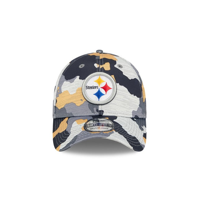 La temporada 2022 de la NFL se acerca y debes estár préparado para el campo de entrenamiento con esta 39THIRTY de Pittsburgh Steelers NFL Training 2022 la cual presenta el logotipo de los Steelers bordado en los paneles frontales sobre un diseño en camuflaje del color representativo del equipo y el logo de la liga en la parte trasera. Cómprala ya.
