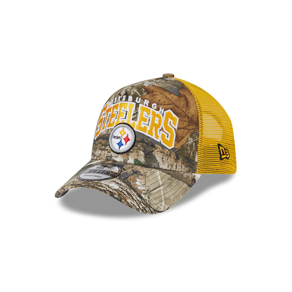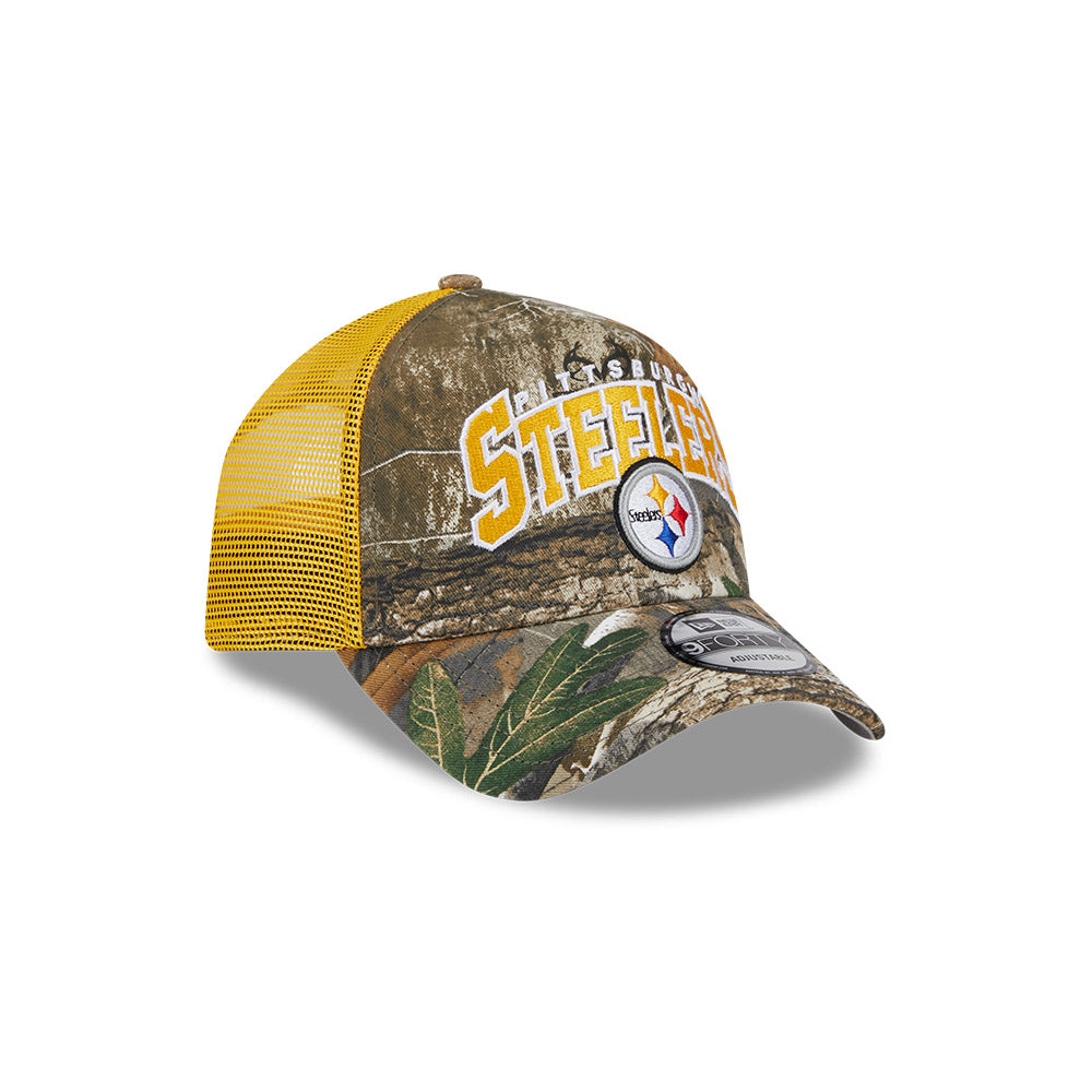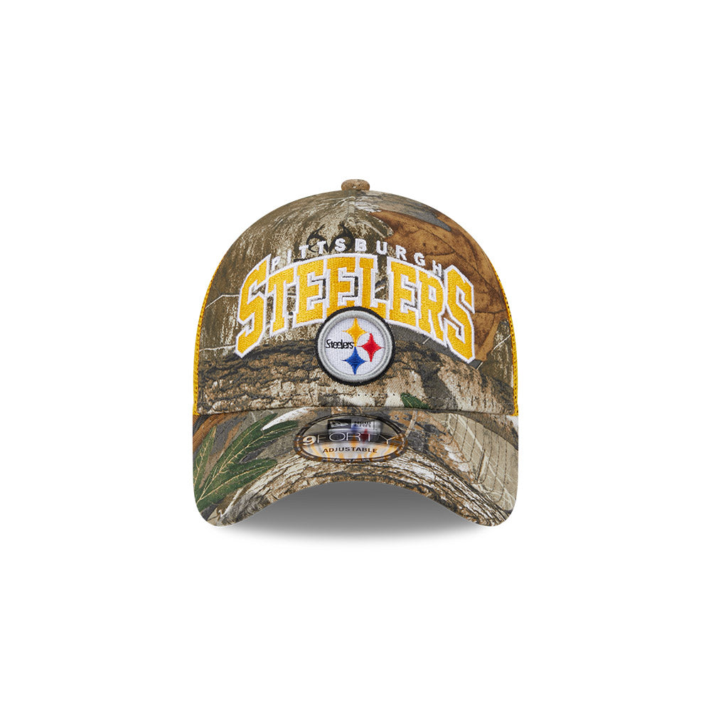 Esta gorra curva New Era 9FORTY AF de Pittsburgh Steelers de la colección NFL Trucker Camo presenta un diseño de camuflaje con el nombre y logotipo de los Steelers bordado en los paneles frontales, malla trucker al reverso y el flag de New Era bordado del lado izquierdo. Cómprala ya.