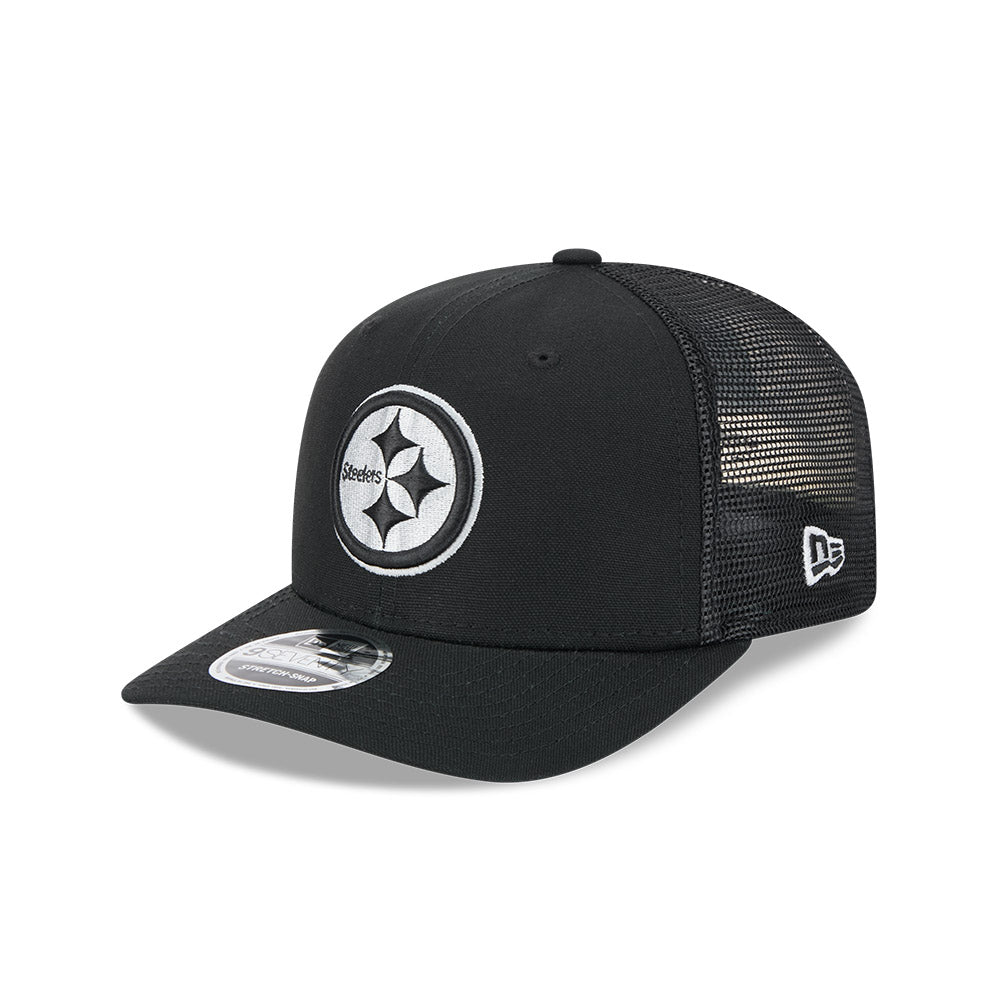 Esta gorra New Era 9SEVENTY de Pittsburgh Steelers de la colección NFL Trucker Canvas presenta un diseño con el logotipo de los Steelers bordado en los paneles frontales, malla trucker al reverso y el flag de New Era bordado del lado izquierdo. Apoya a tu equipo y cómprala ya.