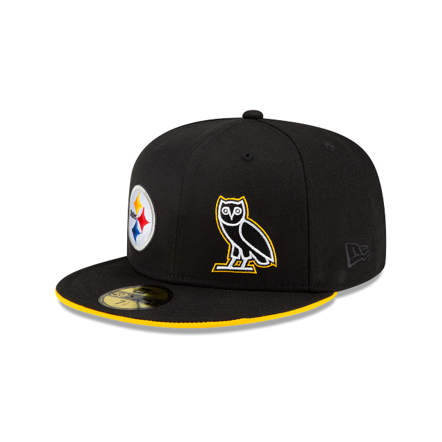 Esta gorra New Era 59FIFTY de Pittsburgh Steelers de la colaboración OVO X NFL presenta el ícono de la marca del rapero Drake y el logotipo de los Steelers bordados en los paneles frontales, el logotipo de la conferencia al reverso y el flag de New Era bordado en el lado izquierdo. No te pierdas este artículo de colección. Cómprala ya.